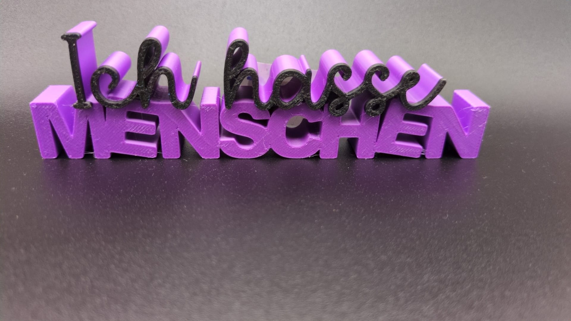 Dieser Druck ist in den Farben Pink und Schwarz. „ICH HASSE MENSCHEN „