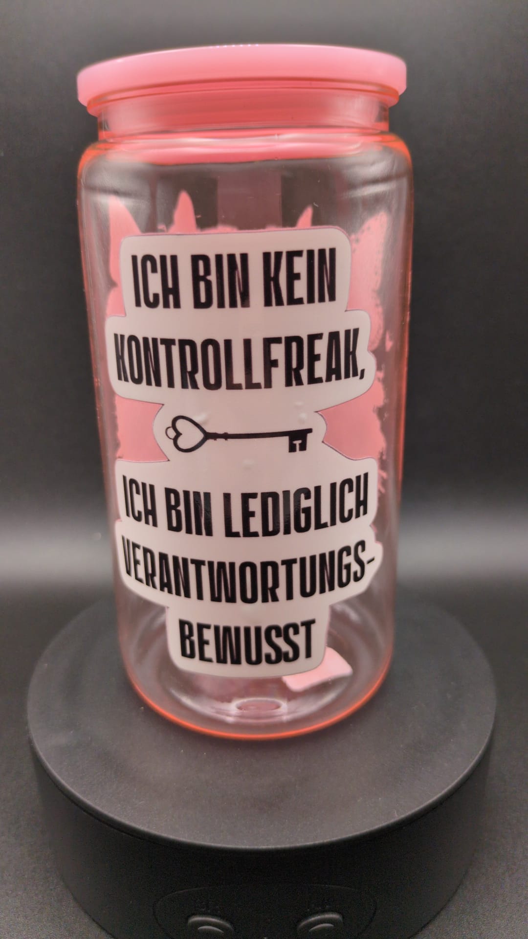 Kunststofftumbler Rosa mit Blumen und Spruch